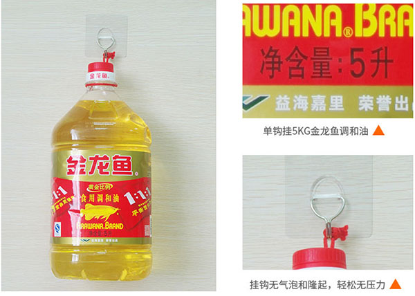最煩的大概是買來的掛鉤不停的掉,然后不停的更換。有時候,并不是掛鉤不好用,而是選錯了品牌。與市面上普通的掛鉤相比較,萬靈可移無痕掛鉤的承重力早已同類產(chǎn)品18條街外了。(以(70*70mm)規(guī)格的可移無痕掛鉤為例,每個掛鉤至少承重5公斤,相當(dāng)于一桶5升的金龍魚食用油。)